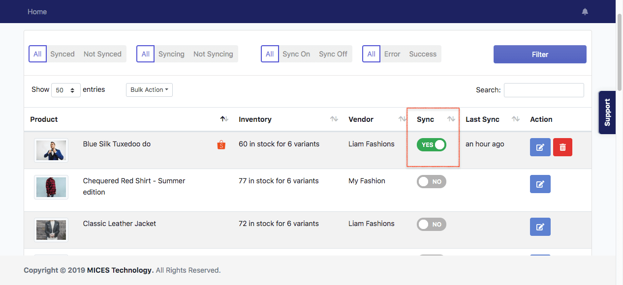 - Find for the product you want to sync, then turn off the “Sync”.