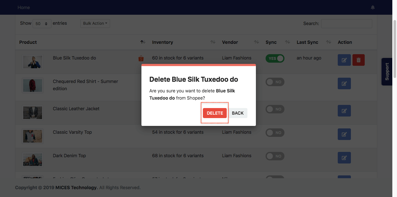 If the EasyStore product is already synced to Shopee, we don’t recommend to delete product in Shopee Seller Centre. You can delete Shopee product in SyncGo for EasyStore. Here are the steps on how to delete Shopee product in SyncGo for EasyStore.
