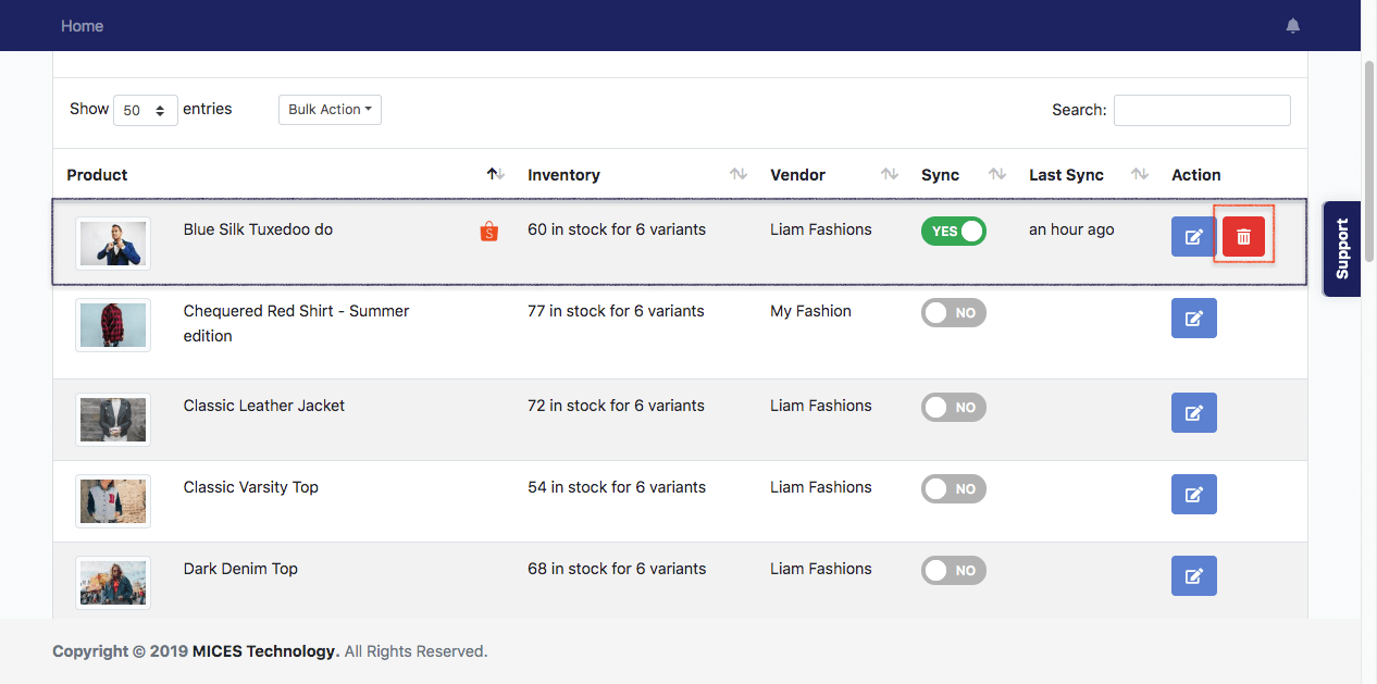 2. Find for the product you want to delete. In the action, click the “Trash” icon.
