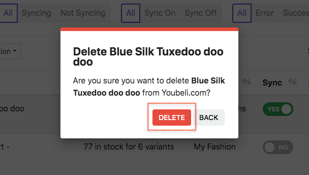 5. Delete Youbeli product in SyncGo for EasyStore