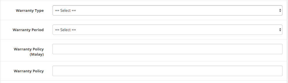 You can set general product information such as warranty type, warranty period, warranty policy. This information will apply to all products.