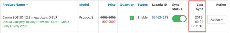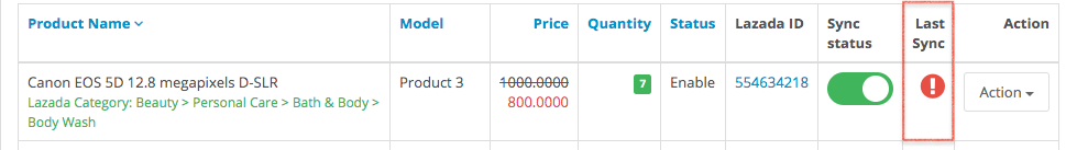 After syncing a product, it may success or return an error. To check the sync result, you have to look at “Last sync” column.
