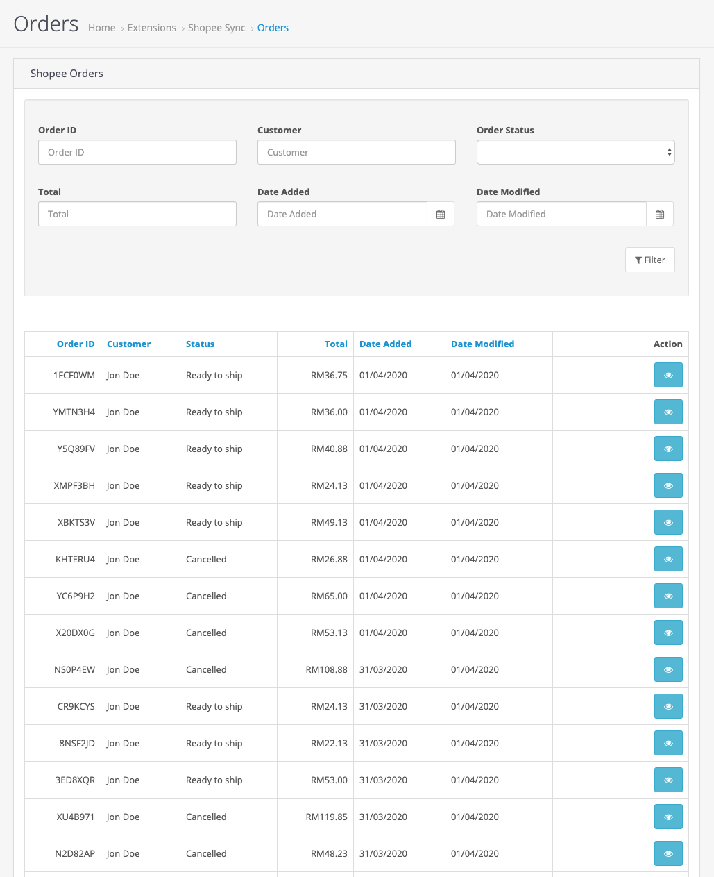 - Go to MICES SyncGo for Opencart – Shopee dashboard, click “Orders”