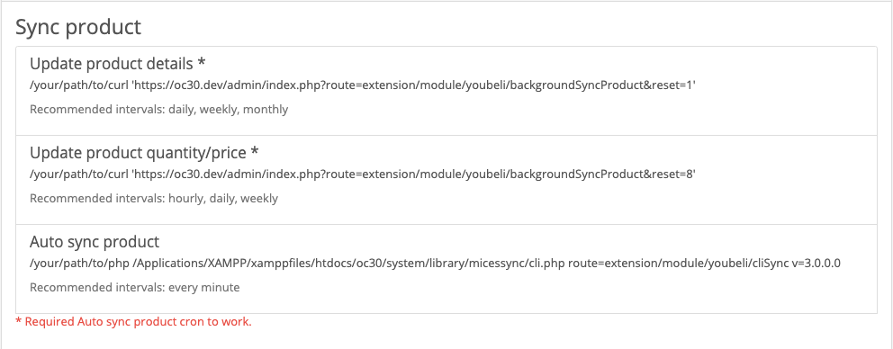 Cronjob is mandatory to set, you can find the cronjob in the MICES SyncGo for Opencart – Youbeli dashboard. There is 2 kinds of cronjob: sync product and pull orders.