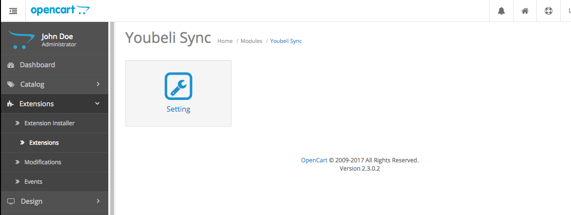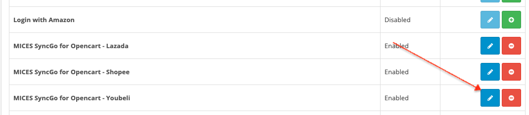 Settings Go back to Extensions->Extension page, find “MICES SyncGo for Opencart – Youbeli” and click “Edit” button On the dashboard, click “Setting” Enter “Store ID” and “API Key” obtain from Youbeli, and enable the module. Click “save” to save settings. Doc navigationCronjob → Was this article helpful to you? Yes No How can we help? Name Email subject message