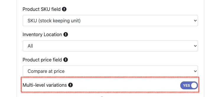 Enable “Multi-level variations” to migrate to 2-tier variations