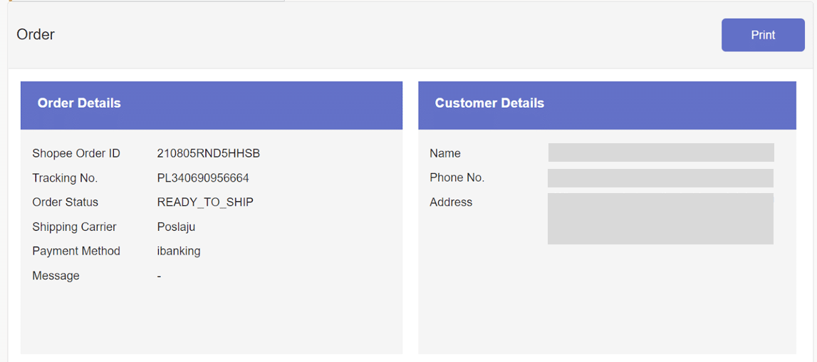 - If the airway bill cannot be fetch and not available, the ‘Print’ button will not be displayed