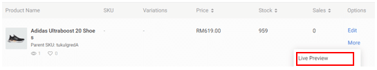 To get the Shopee product ID, you need to login to your Shopee Seller Centre and go to My Product page. Select any product and click More > Live Preview.