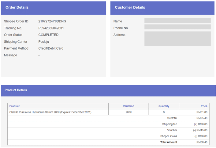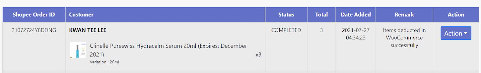 The remark column will inform briefly either the stock is deducted, order cancelled or item not match